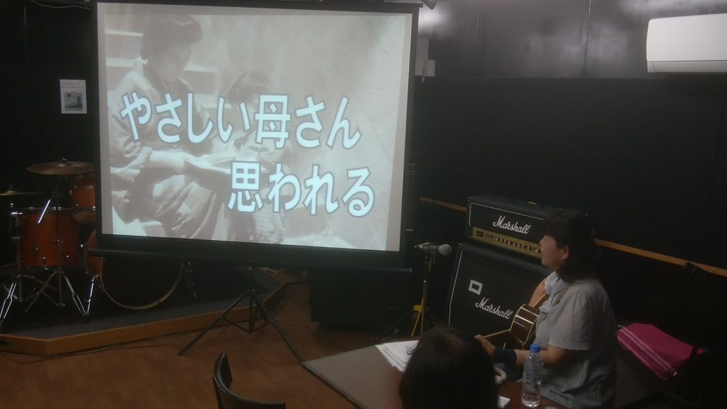 昭和20年~40年代の懐かしい神戸の写真をスライドで表示しながら、当時流行していた歌謡曲やフォークソングを歌って、入所者の方に当時の出来事や記憶を思い出して元気になっていただきたいというものです。